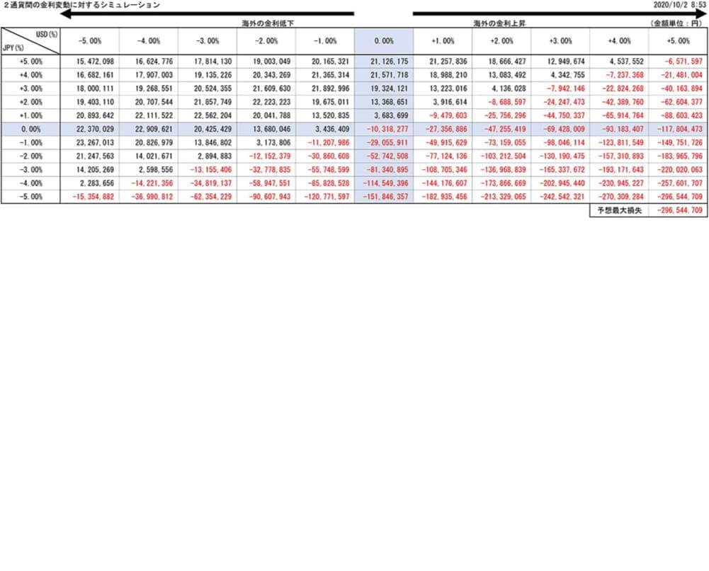 - 2通貨間の金利変動に伴うリスクシナリオ