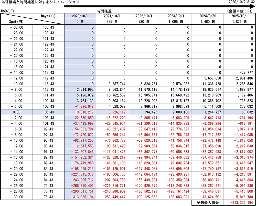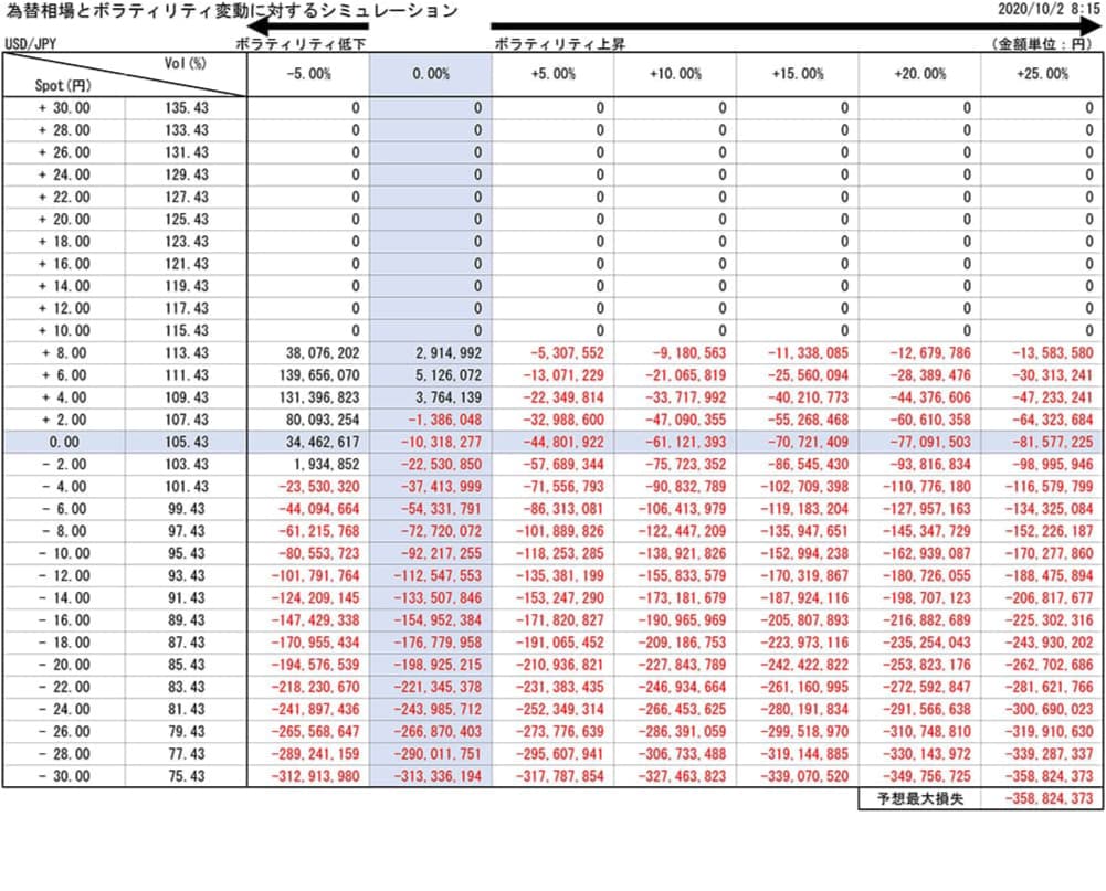 - スポット及びボラティリティ変動に伴うリスクシナリオ